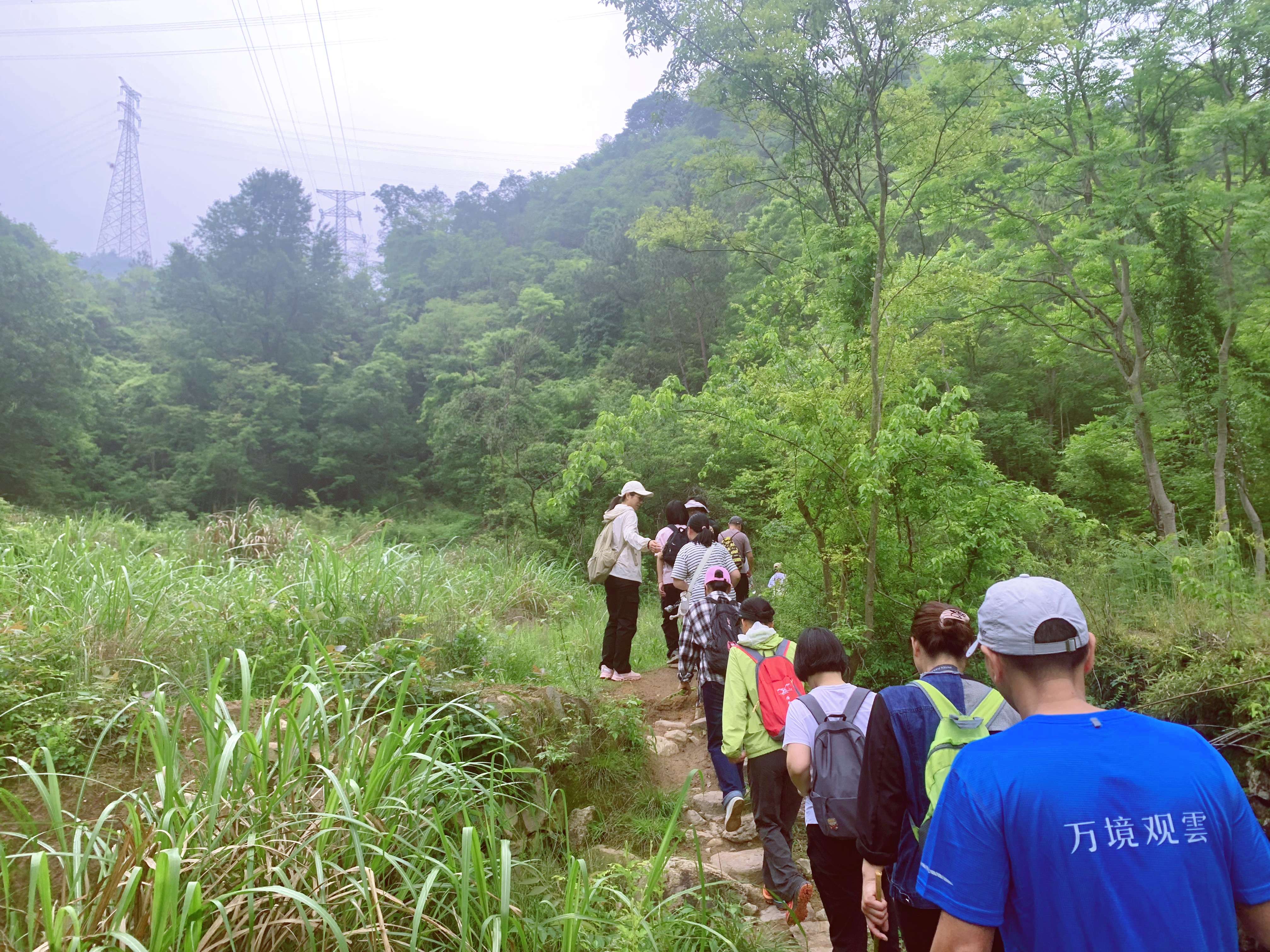 連綿的綠植日夜吐納新鮮的氧氣,進山后大家都貪婪地呼吸著富含負(fù)氧離子的空氣,走在坎坷崎嶇碎石路、悠然愜意田間路、扶搖直上山地路,看看青山綠水,放松心情。